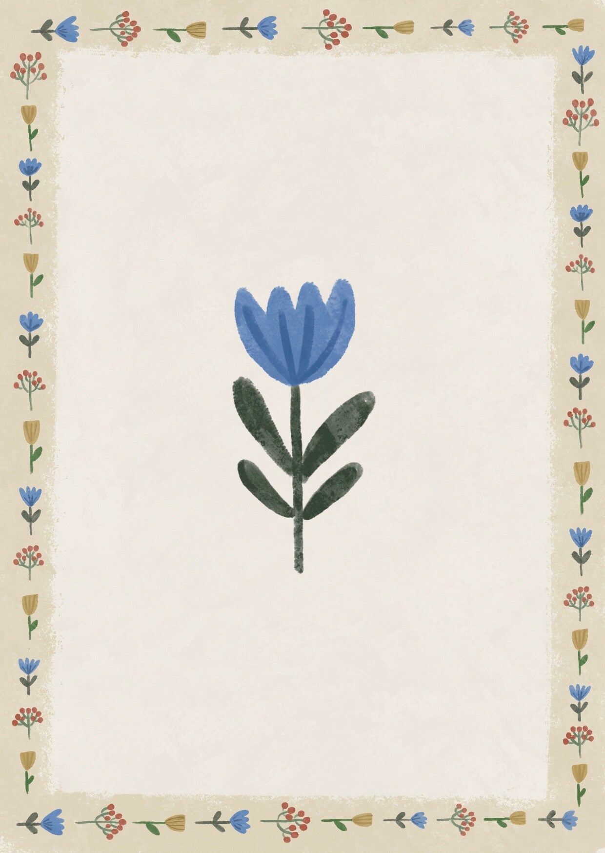 1x kaart blauw bloempje